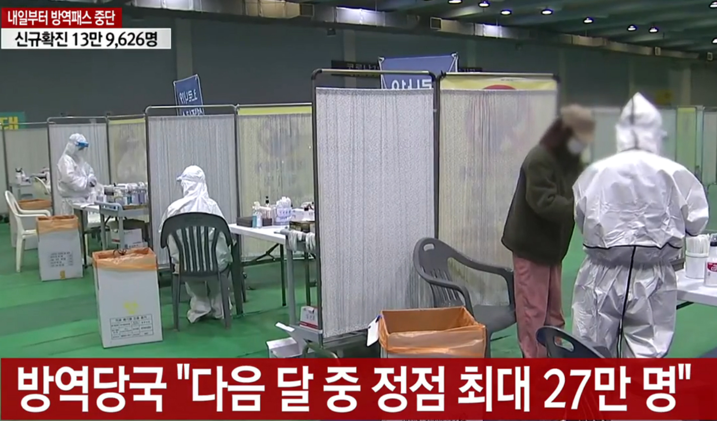 정부는 다음 달 중에 오미크론 변이 확산이 정점을 찍으면서 최대 27만 명의 확진자가 나올 것으로 예상하고 있습니다.