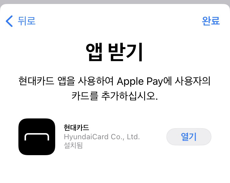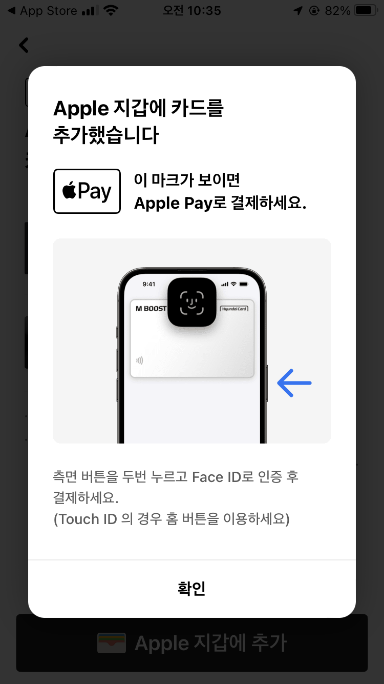 잠시 후 Apple 지갑에 카드를 추가했다는 문구가 나옵니다. 오호~~