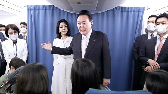 기내에서 윤 대통령은 오전 2시 40분쯤 기자단 좌석을 찾아와 일일이 악수하며 “먼 길 수고 많다. 맥주는 좀 하셨느냐”며 인사를 건냈습니다. 첫 해외 일정에 대한 마음가짐을 묻자 “특별한 마음가짐이 있겠나”고 했습니다.