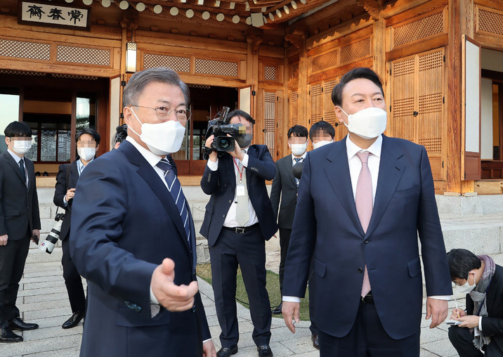 윤 당선인은 문 대통령에게 “많이 도와달라”며 조언과 협력을 요청했고, 문 대통령은 “저의 경험을 많이 활용해 달라, 돕겠다”고 답했습니다. 문 대통령은 “정당 간의 경쟁은 할 수 있어도 대통령간의 성공 기원은 인지상정”이라고 말했고, 윤 당선인은 이에 “감사하다. 국정은 축적의 산물이다. 잘 된 정책은 계승하고 미진한 정책은 개선해 나가겠다. 초대해주셔서 감사하다’고 말했습니다.